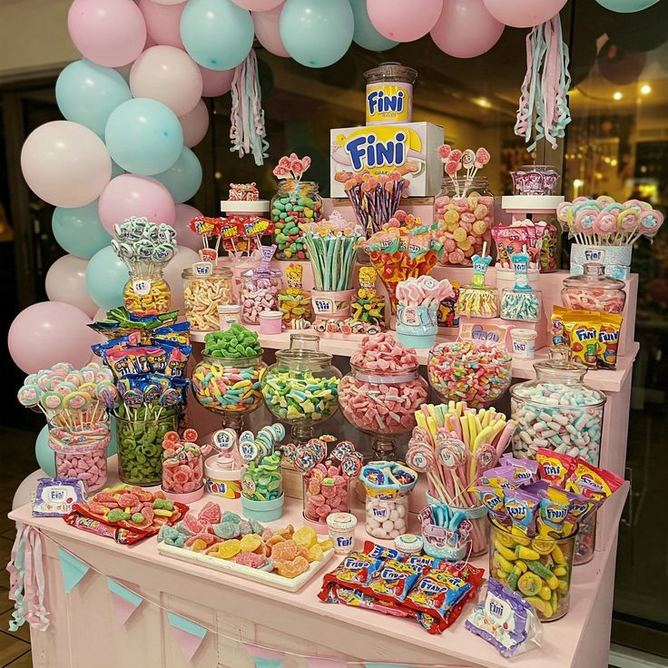 Während ein Sweet Table, ein komplettes Kuchen-oder Dessert-Buffet ersetzt, ist eine Candy Bar, eine liebevoll zusammengestellte Sammlung, von farblich und auf das Motto abgestimmter, Süssigkeiten.
