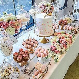 Ein Sweet Table ist ein Desserttisch, auf dem ausschliesslich frisches, selbstgemachtes Gebäck angerichtet wird. Neben einer grossen Auswahl an Mehlspeisen, wie Mini-Kuchen, Cupcakes, Macarons, Mini-Törtchen, Cake Pops, etc., kann der Sweet Table ausserdem von einer Torte gekrönt werden.