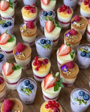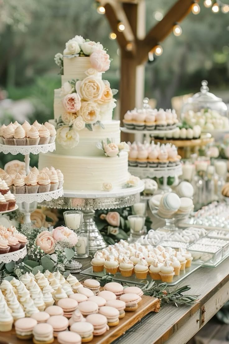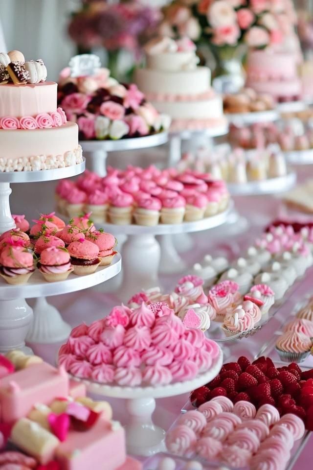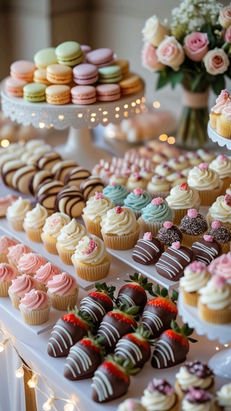 Ein Sweet Table kann umfassend gestaltet werden und sowohl klassische Mehlspeisen, als auch kunstvolles Gebäck, machen darauf eine gute Figur. Gerne werden auch kleine Dessertschalen mit Cremen, Mousses und Schichtdesserts, auf dem Sweet Table angerichtet, was ihn zu zur perfekten Alternative für den traditionellen Kuchentisch macht und den Gästen für kleine Häppchen zwischendurch oder zum Kaffee zur Verfügung steht.